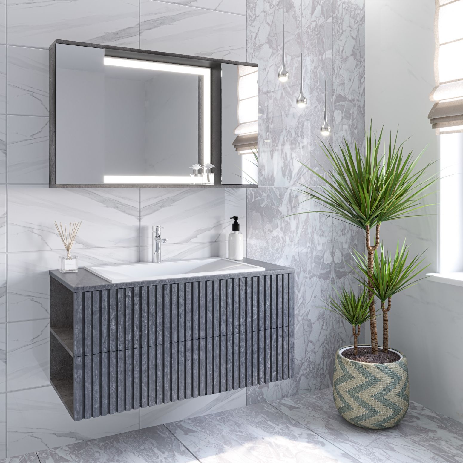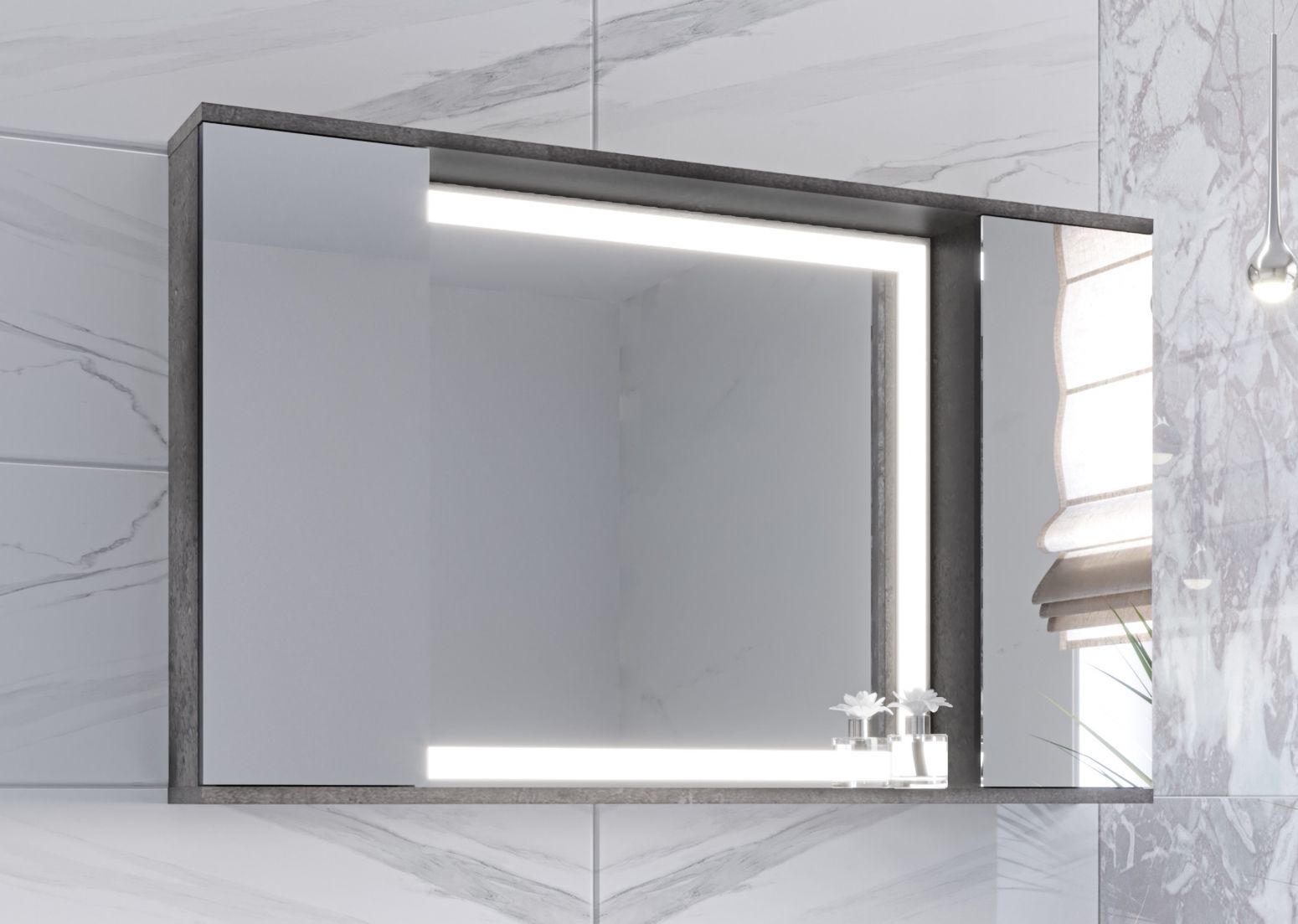 Зеркало-шкаф с подсветкой Stella Polar Дэрри 100см бетон/цемент SP-00001039